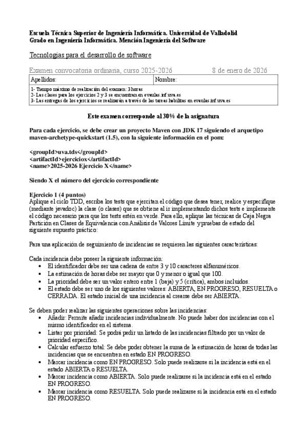 He publicado nuevos examenes de 3º Tecnologías para el Desarrollo de Software: Examen ordi TDS 2026