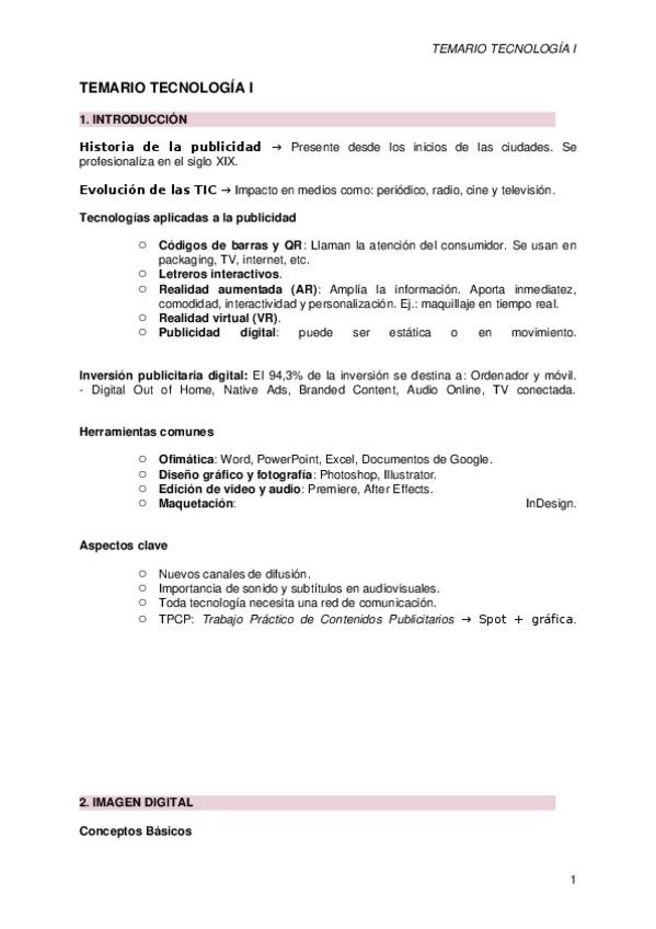 He publicado nuevos apuntes de 3º Tecnologías para la Producción de Contenidos Publicitarios: TEMARIO-TECNOLOGIA-1.docx