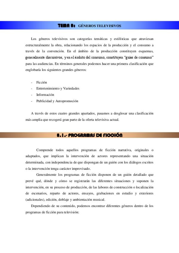 He publicado nuevos apuntes de 2º Televisión y Video: Tema 8 generos televisivos.pdf