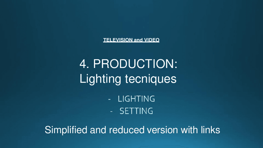 He publicado nuevos apuntes de 2º Televisión y Video: Unit-4.2-PRODUCTION-Lighting-techniques-simplified-version.pdf