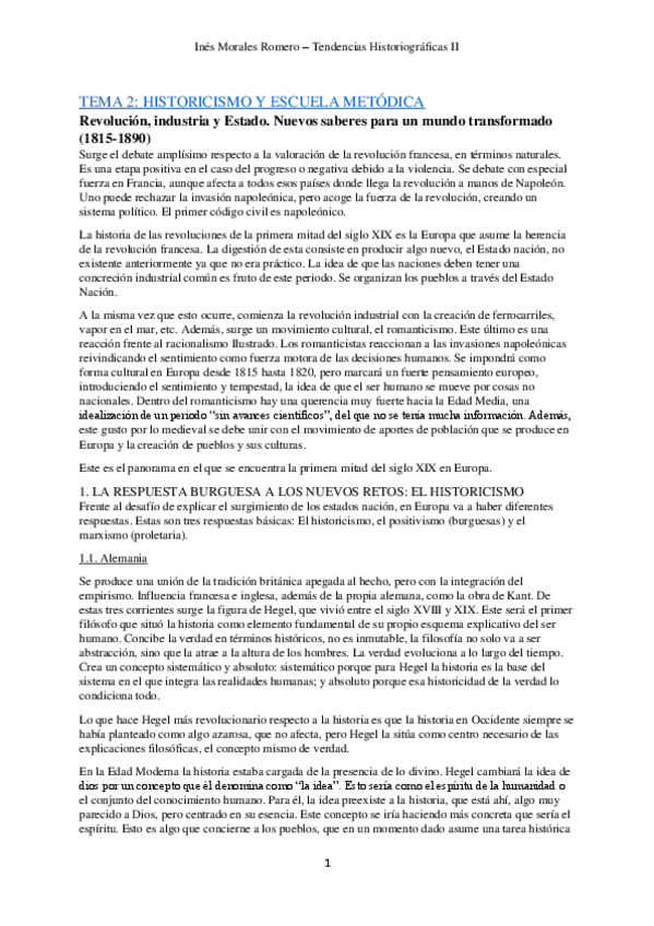 He publicado nuevos apuntes de 1º Tendencias Historiográficas II: Moderna, Contemporánea, América: Tema 2 / Historicismo / Positivismo.pdf