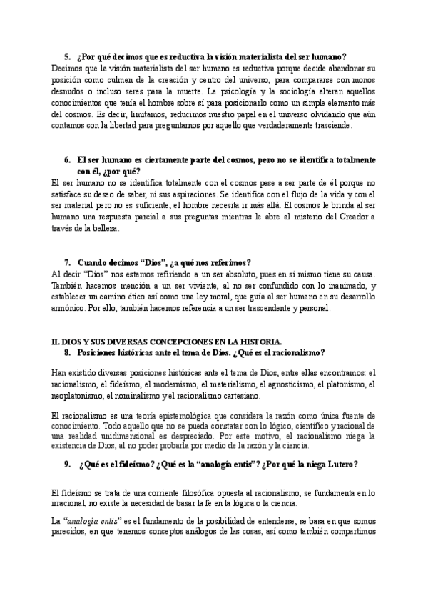 Preguntas del primer parcial de Teología I.