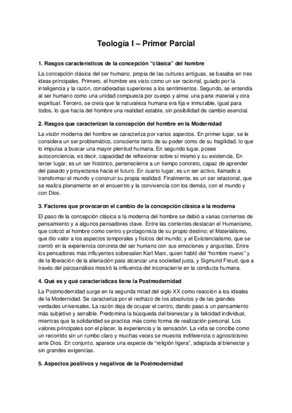 Preguntas del primer parcial de Teología I.