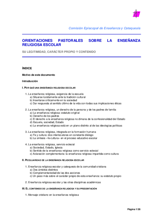 Teología y Didáctica de la Religión Católica i (Deca I)
