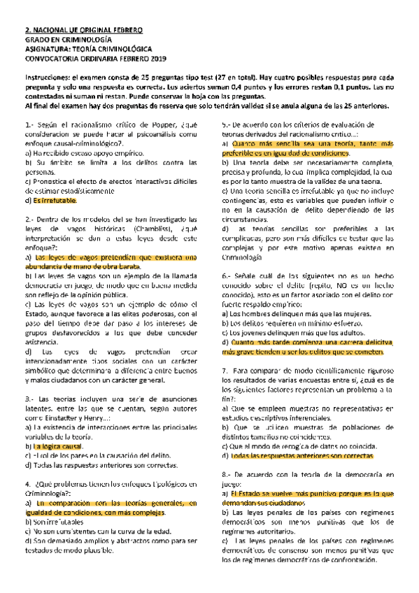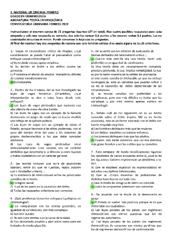 EXAMENES RESUELTOS AÑO 2018-2019 TEORÍA CRIMINOLÓGICA