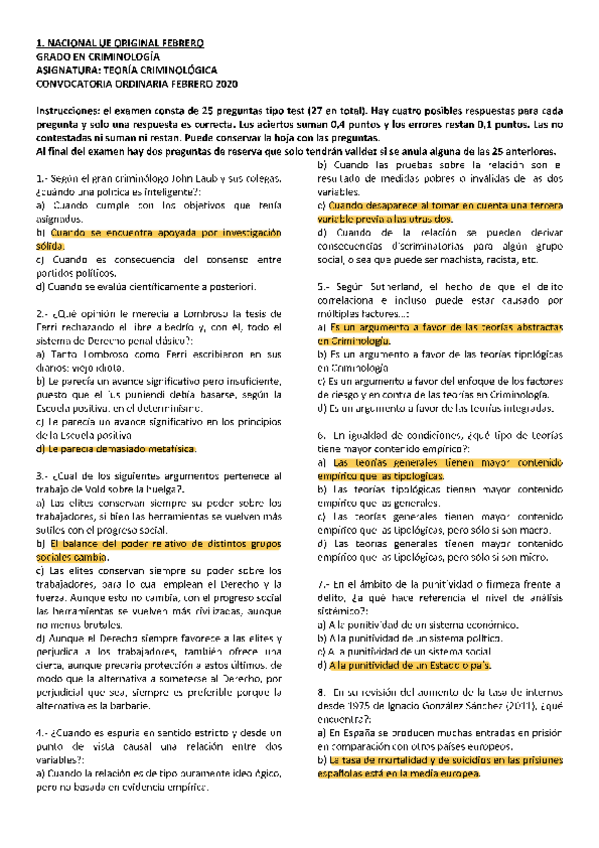 EXAMENES RESUELTOS AÑO 2019-2020 TEORÍA CRIMINOLÓGICA
