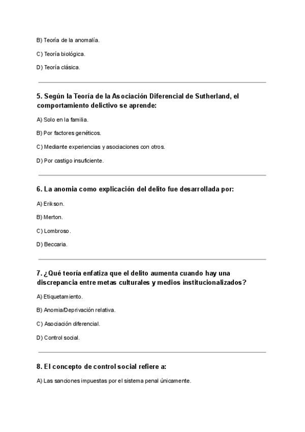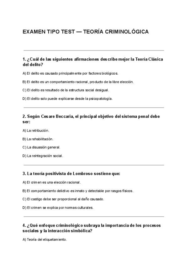 EXAMEN TEORÍA CRIMINOLÓGICA. RECOPILADOS DE EXÁMENES ANTERIORES CAEN SI O SI EN EL EXAMEN