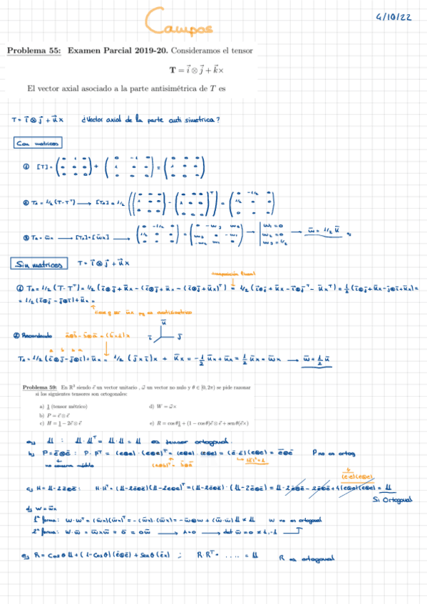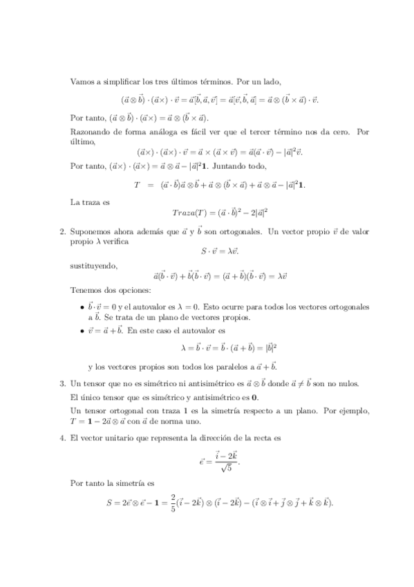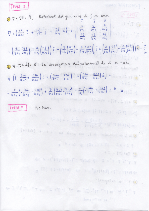 “Tensores ortogonales” y “Tensores simétricos y representación espectral” (secciones 2.10 y 2.12 de los apuntes del Tema 1) + Tema 2 hasta e incluyendo el “Operador divergencia” (hasta e incluyendo sección 3.6 de los apuntes del Tema 2).