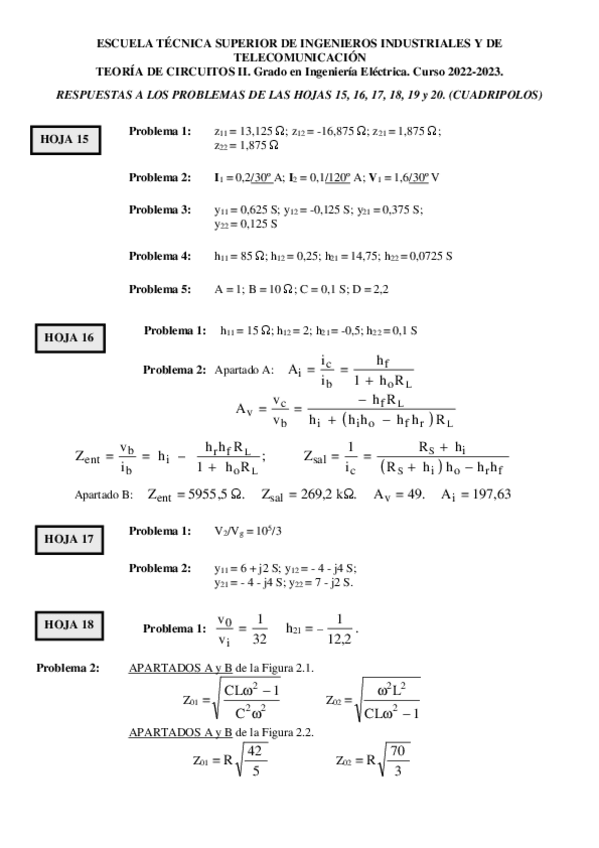He publicado nuevos ejercicios de 2º Teoría de Circuitos II: Enunciados y resultados - Hojas Problemas TC II