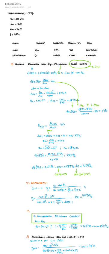 Ejercicios trafos trifásicos tipo examen