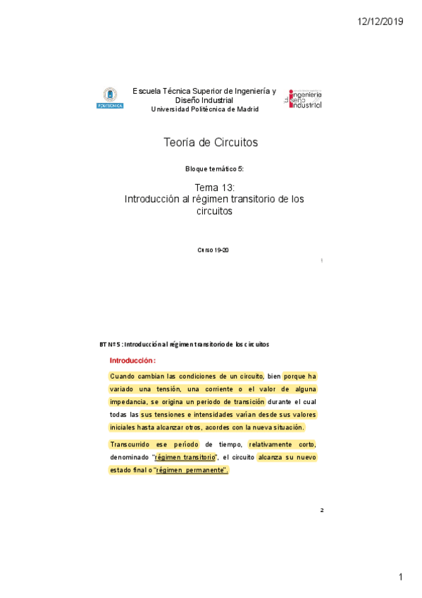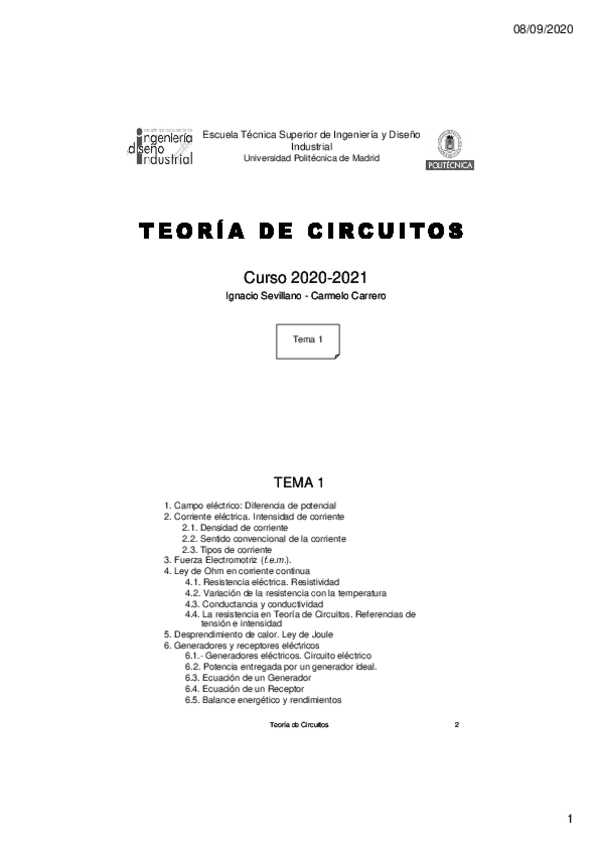 Teoría Teoría de Circuitos I