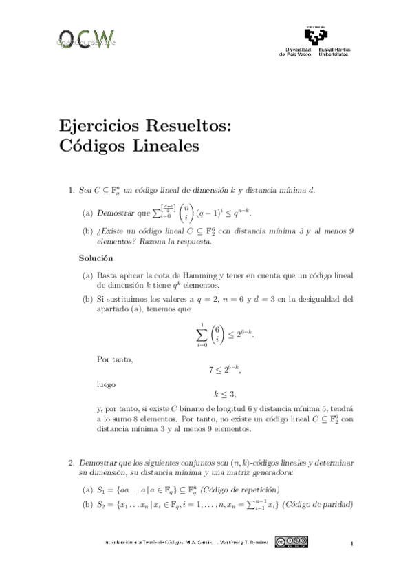 He publicado nuevos ejercicios de 3º Teoría de Códigos y Criptografía: Ejercicios-Teoria-de-Codigos.pdf