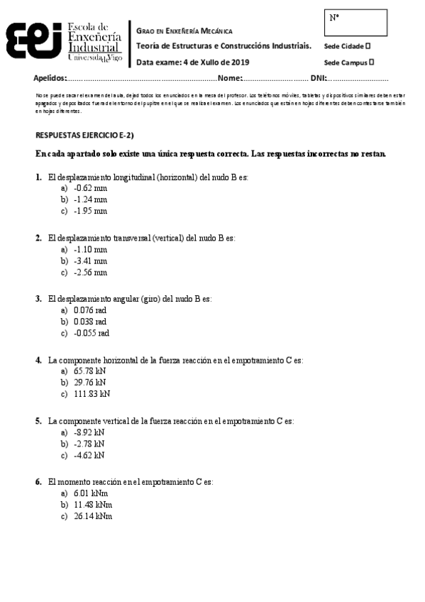 He publicado nuevos examenes de 3º Teoría de Estructuras y Construcciones Industriales: Examen-TECI-2019-Julio-Matricial.pdf