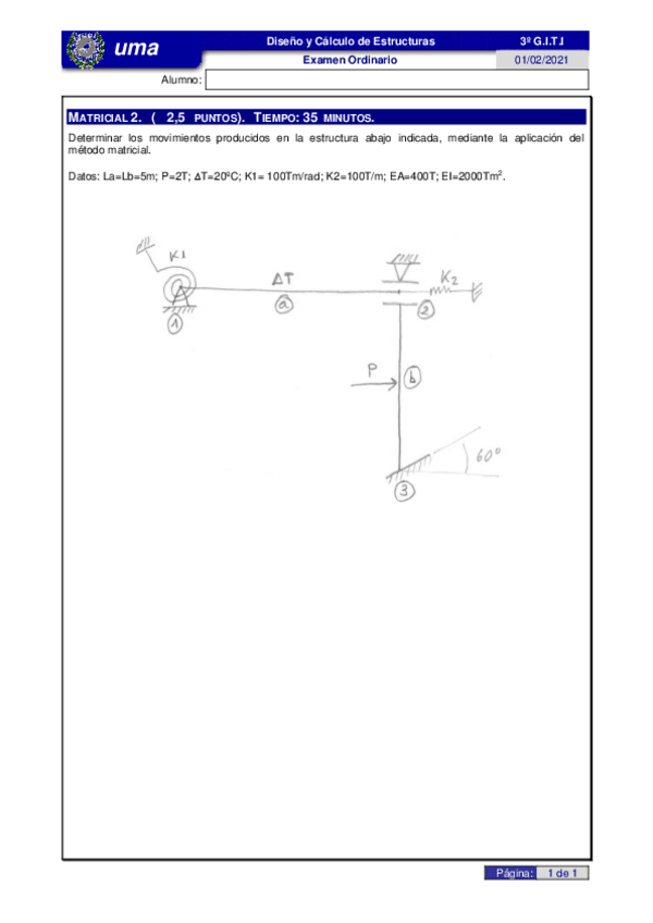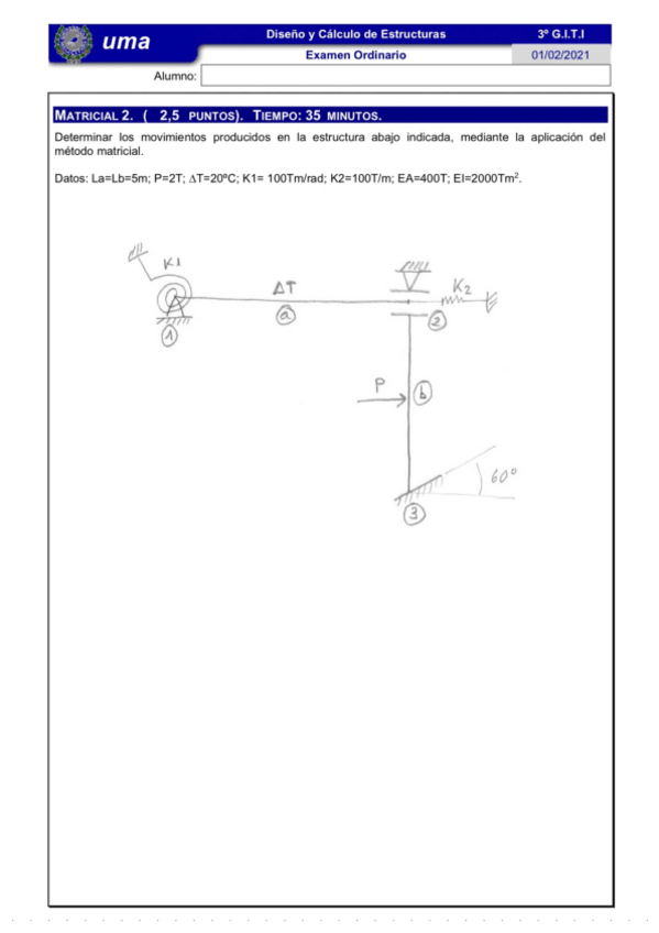 He publicado nuevos examenes de 3º Teoría de Estructuras y Construcciones Industriales: Problemas resueltos examen_Matricial