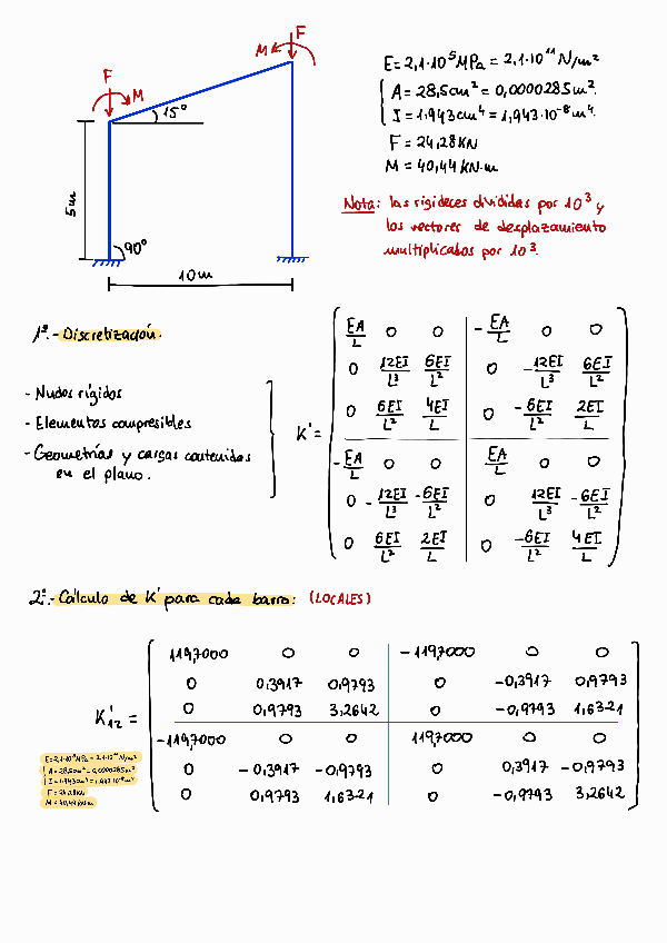 He publicado nuevos ejercicios de 3º Teoría de Estructuras y Construcciones Industriales: MATRICIAL-COMPLETO.pdf