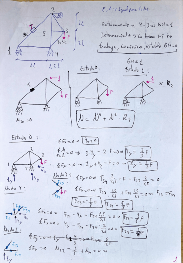 He publicado nuevos ejercicios de 3º Teoría de Estructuras y Construcciones Industriales: Articuladas Hiperestáticas