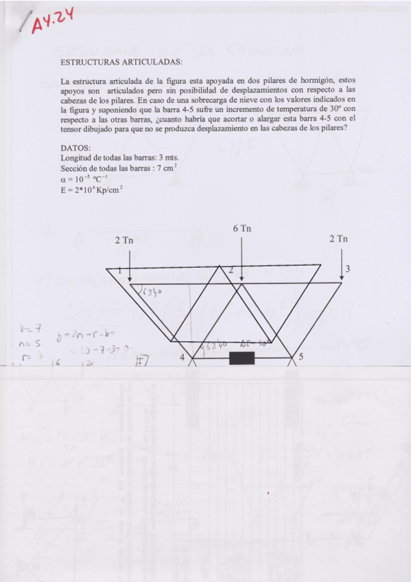 He publicado nuevos ejercicios de 3º Teoría de Estructuras y Construcciones Industriales: Articuladas Hiperestáticas