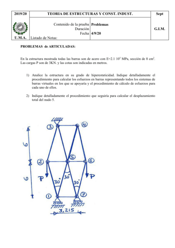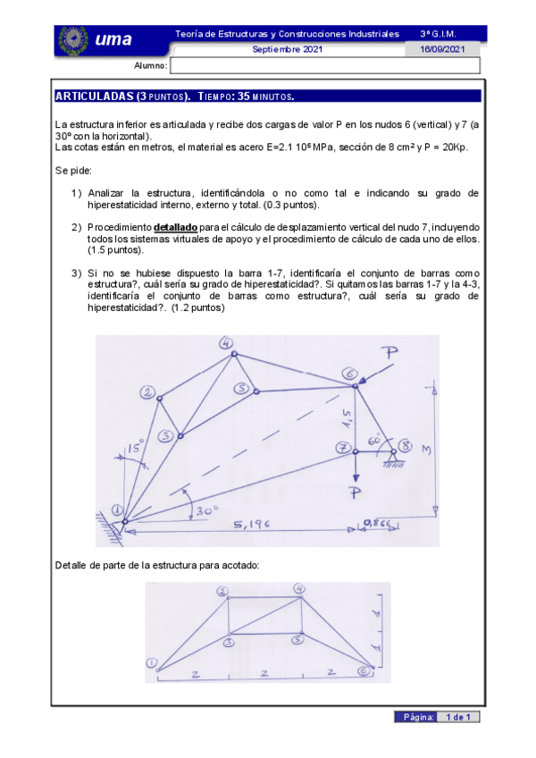He publicado nuevos examenes de 3º Teoría de Estructuras y Construcciones Industriales: Problemas resueltos examen. Articuladas