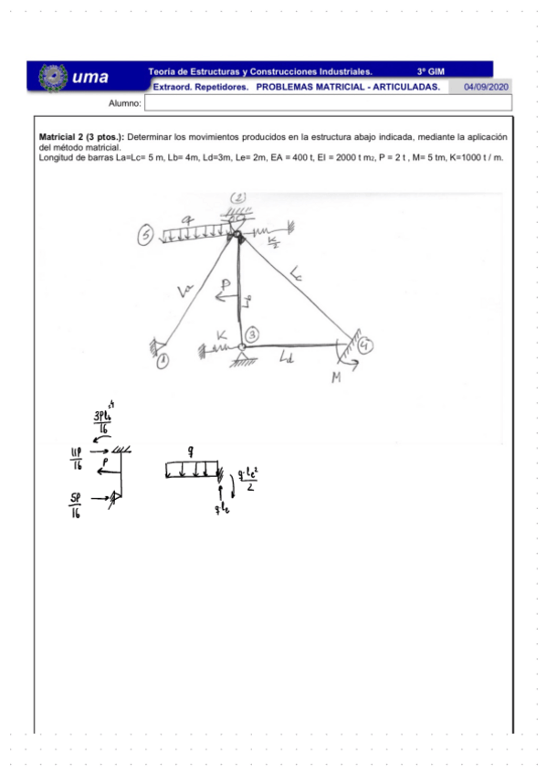 He publicado nuevos examenes de 3º Teoría de Estructuras y Construcciones Industriales: Problemas resueltos examen_Matricial