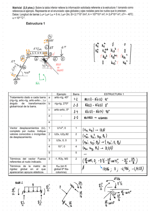 He publicado nuevos ejercicios de 3º Teoría de Estructuras y Construcciones Industriales: MATRICIAL-COMPLETO.pdf