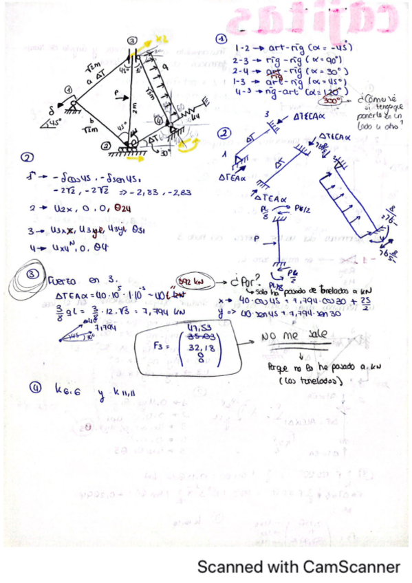 He publicado nuevos ejercicios de 3º Teoría de Estructuras y Construcciones Industriales: Articuladas Movimientos y Tensores