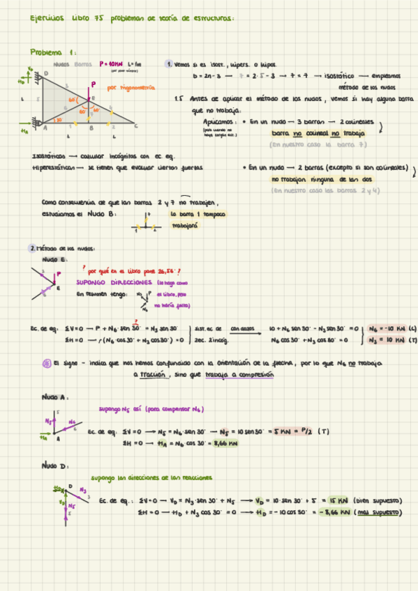 He publicado nuevos ejercicios de 3º Teoria de Estructuras: Problemas-nudos-articulados.pdf