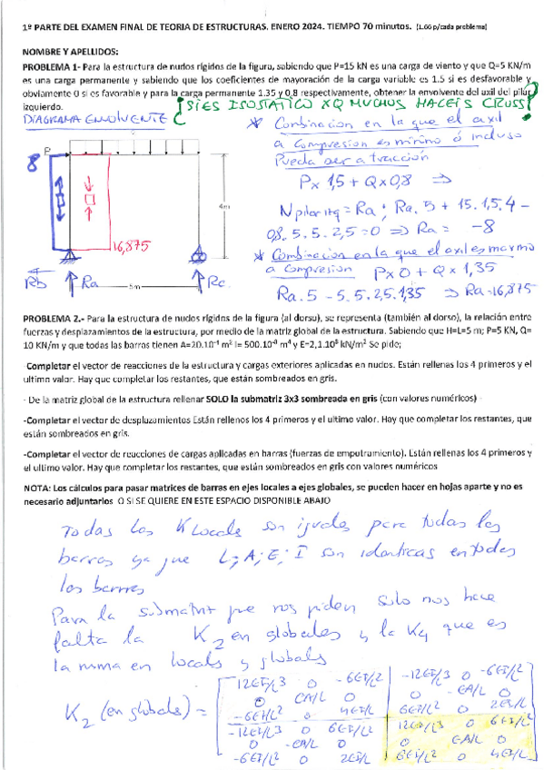 He publicado nuevos ejercicios de 3º Teoria de Estructuras: Problemas-matricial.pdf