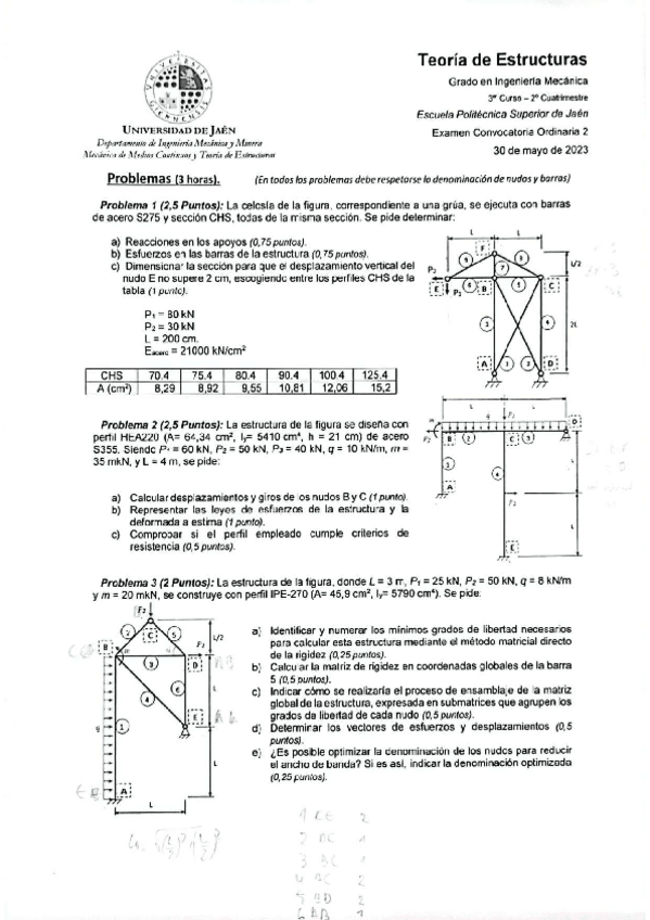He publicado nuevos examenes de 3º Teoria de Estructuras: Extraordinaria-23.pdf