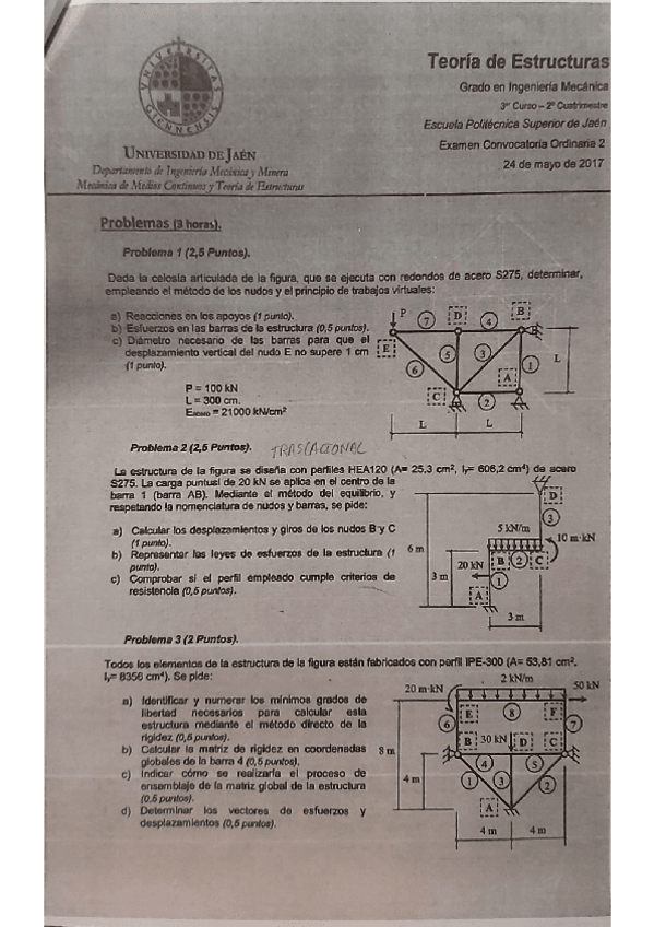 He publicado nuevos examenes de 3º Teoria de Estructuras: ExamenMayo2019.pdf