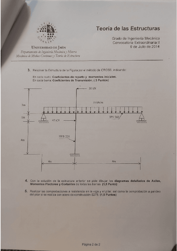 He publicado nuevos examenes de 3º Teoria de Estructuras: Ejemplo examen 1 julio 2017.pdf