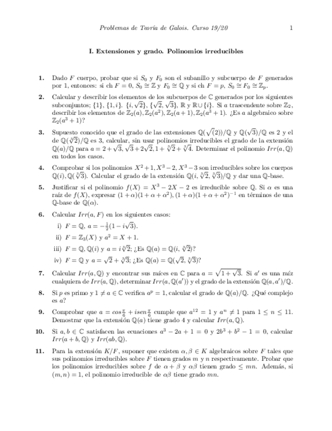Ejercicios Teoría de Galois