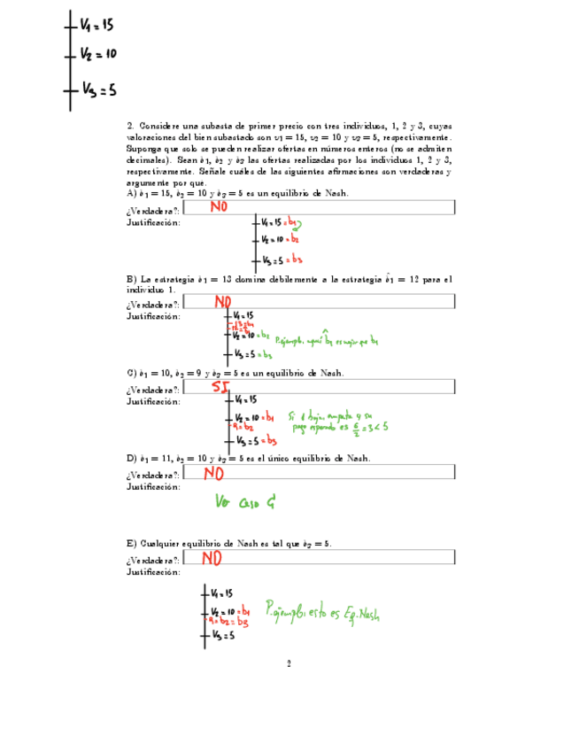 2º Parcial de Teoría de Juegos con soluciones cortas, curso 2023/24