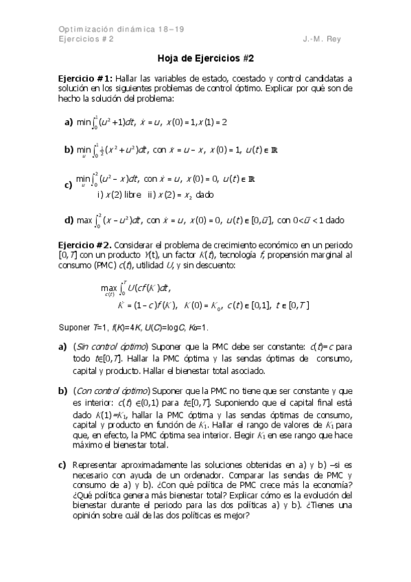 Hojas de ejercicios Optimización