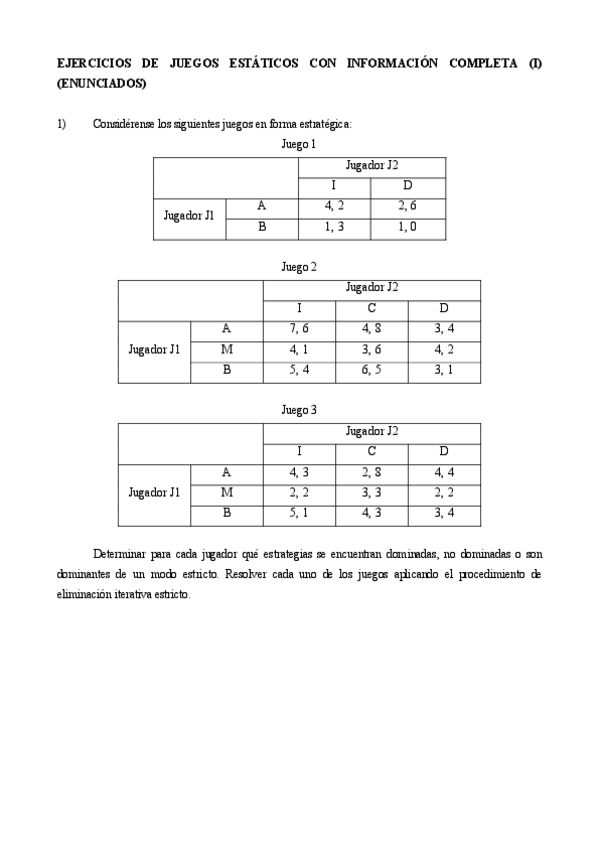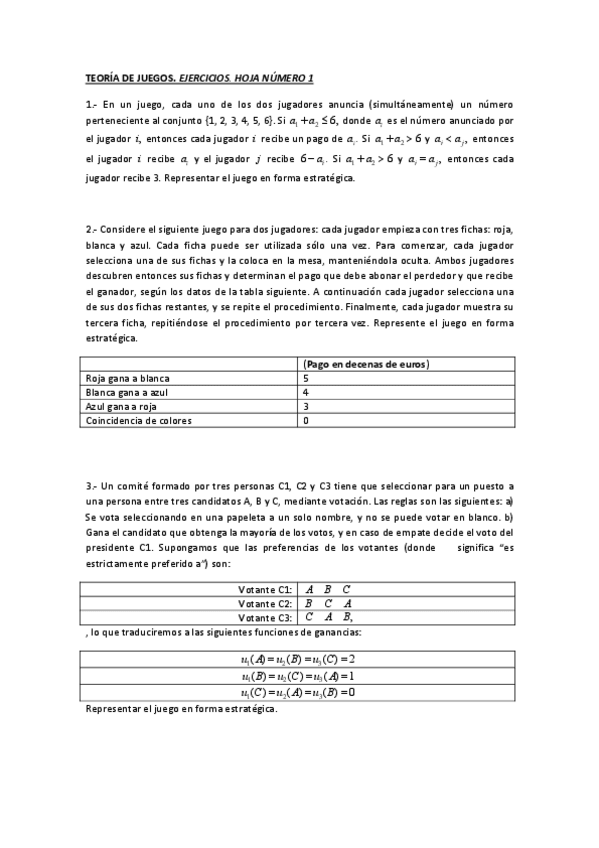 hojas de ejercicios teoria de juegos