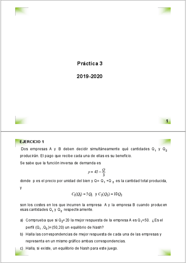 He publicado nuevos examenes de 4º Teoria de Juegos y Optimizacion: Practica de clase 2 18-19_SOL(1).pdf