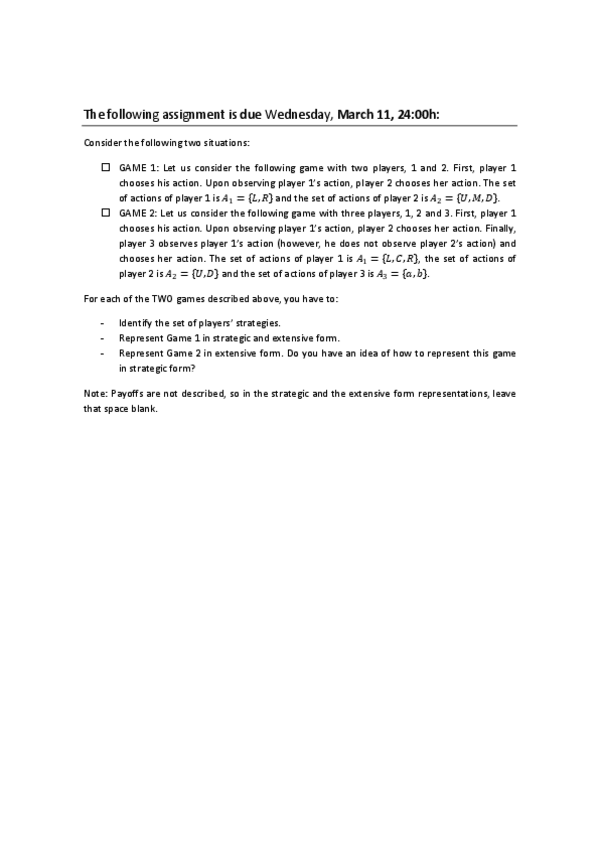 He publicado nuevos ejercicios de 2º Teoria de Juegos: Assignments