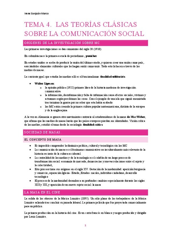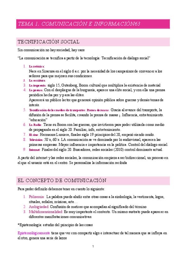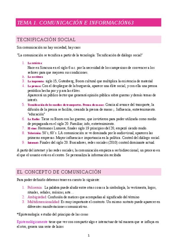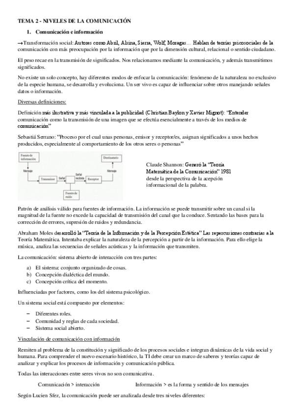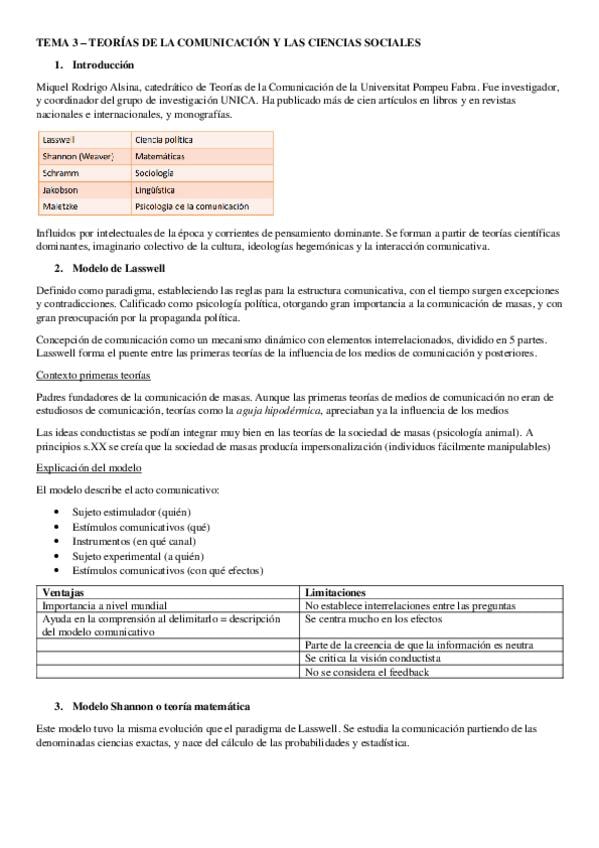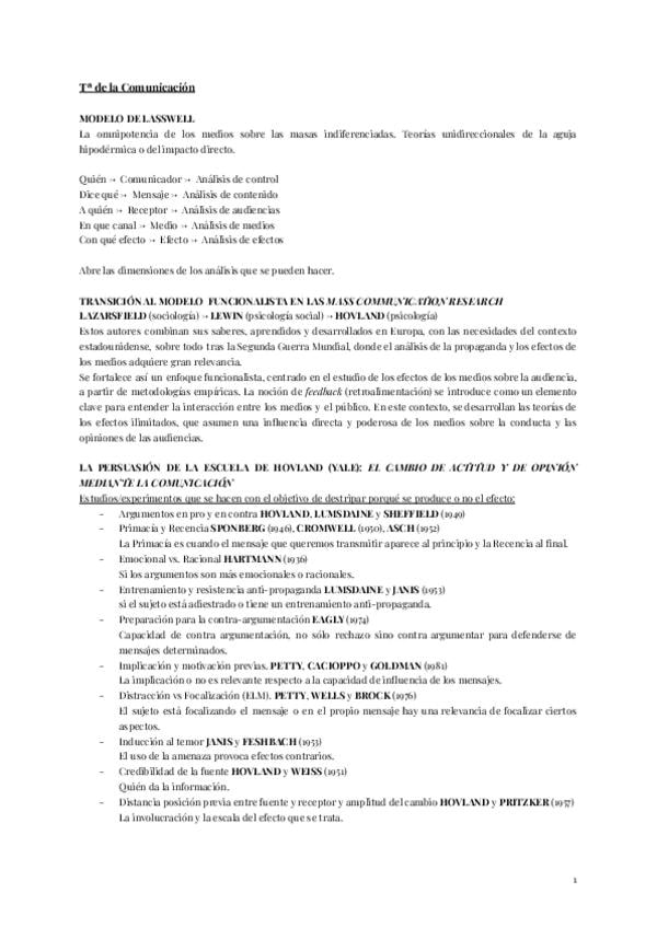 Resumen de todos los temas de Teoría de la Comunicación