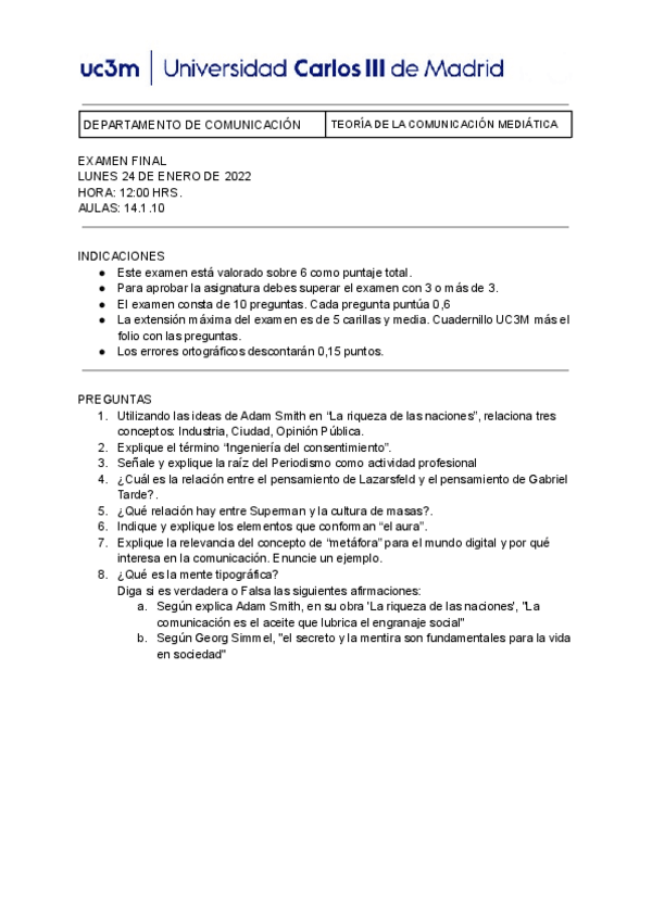 Preguntas largas respondidas de Teoría de la Comunicación Mediática UC3M