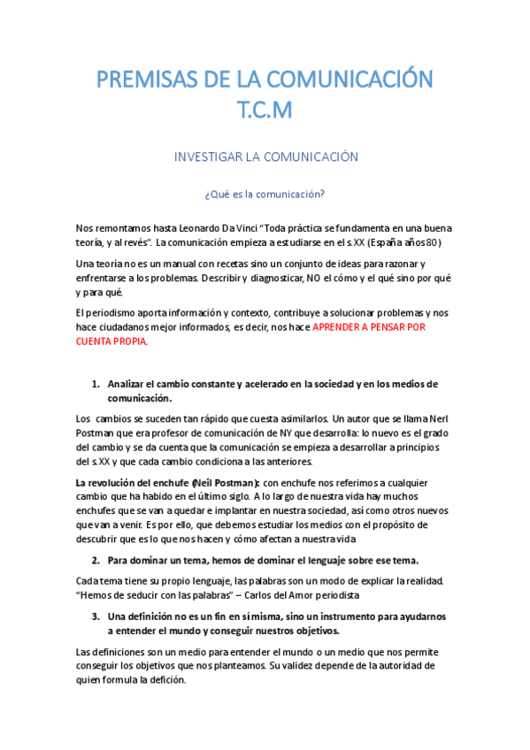 TEMA 1_ PREMISAS PARA EL ESTUDIO DE LA COMUNICACIÓN