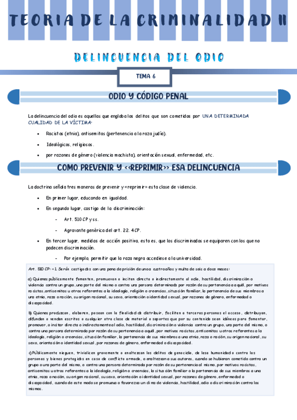 He publicado nuevos apuntes de 2º TEORÍA DE LA CRIMINALIDAD II: TEMA-6-DELINCUENCIA-DE-ODIO.pdf