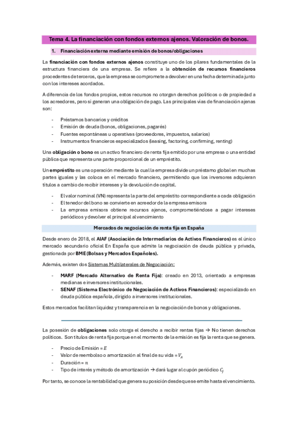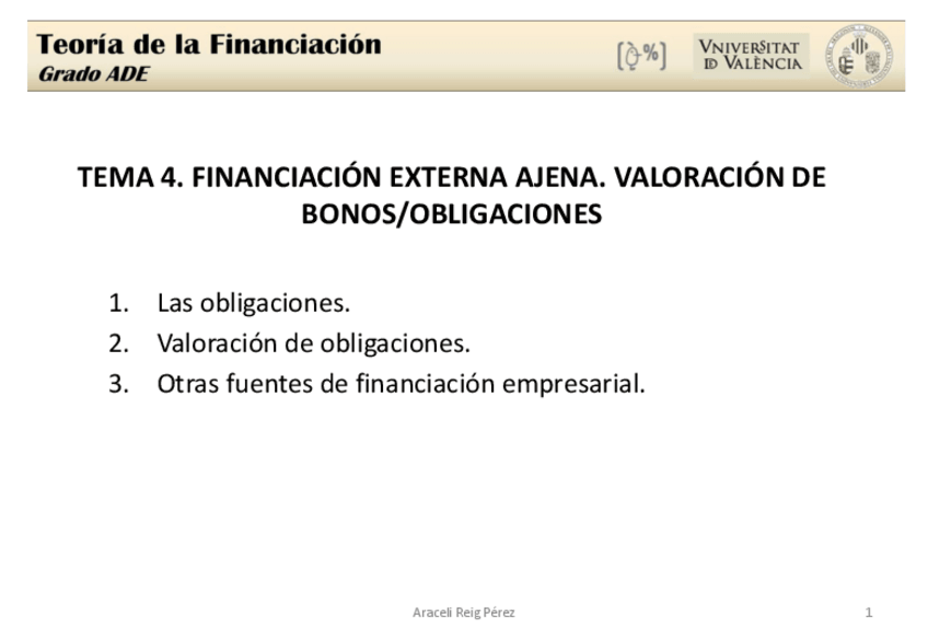 He publicado nuevos apuntes de 3º Teoría de la Financiación: Tema 4 - La financiación con fondos externos - Teoría de la Financiación - ADE UV.pdf
