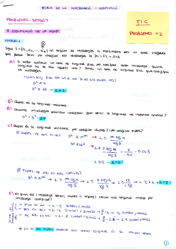 He publicado nuevos apuntes de 2º Teoria de la Informació i de la Codificació: Tema 1 Problemes