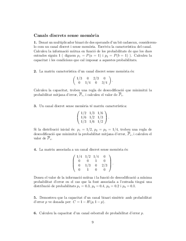 He publicado nuevos ejercicios de 2º Teoria de la Informació i de la Codificació: Problemes-t5.pdf