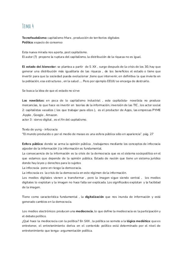 Son los textos que la profesora mandaba para leer pero hechos apuntes para estudiarlo mejor. Por cada tema son 2 textos, cada uno diferenciado por colores. Lo rojo son las preguntas que ella suele hacer en los exámenes (casi siempre pregunta lo mismo)