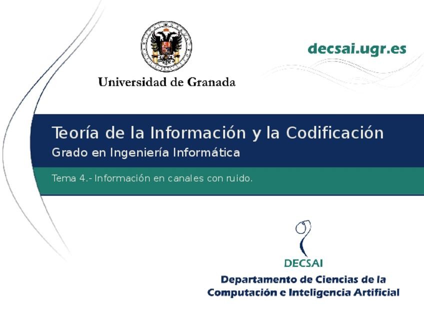 He publicado nuevos apuntes de 4º Teoria de la Informacion y de la Codificacion: Temario