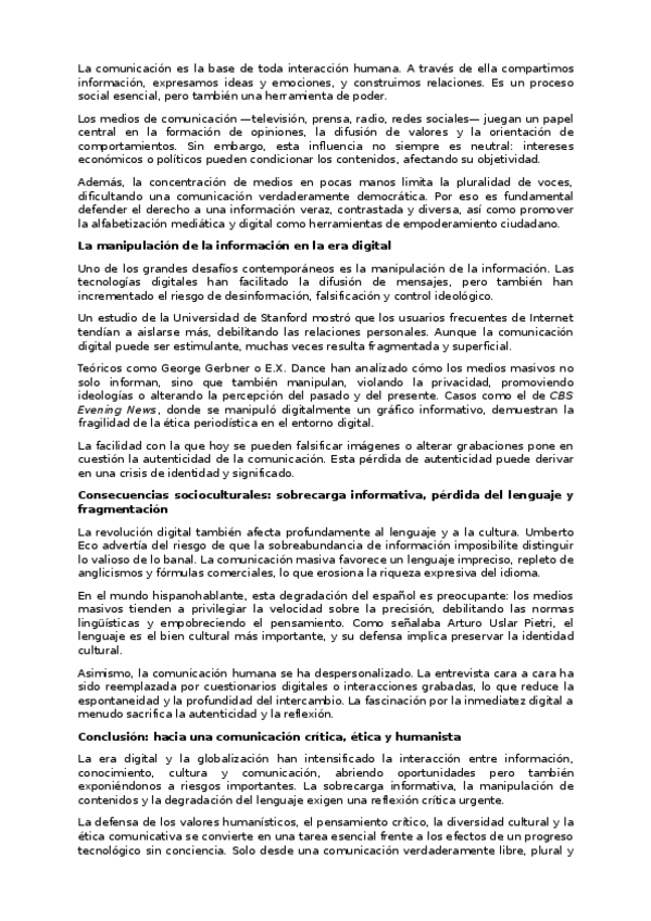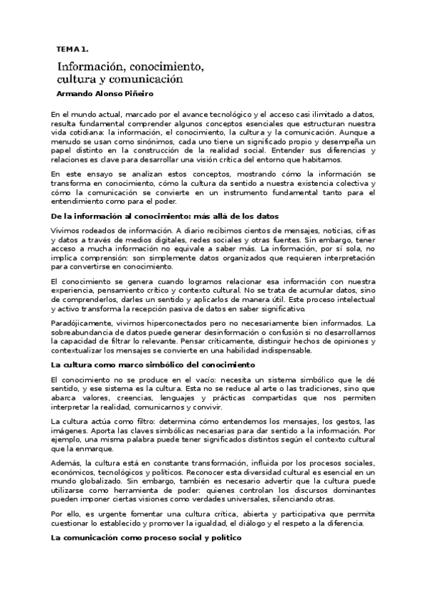 Resumen artículo "Información, conocimiento, cultura y comunicación", de Armando Alonso Piñeiro