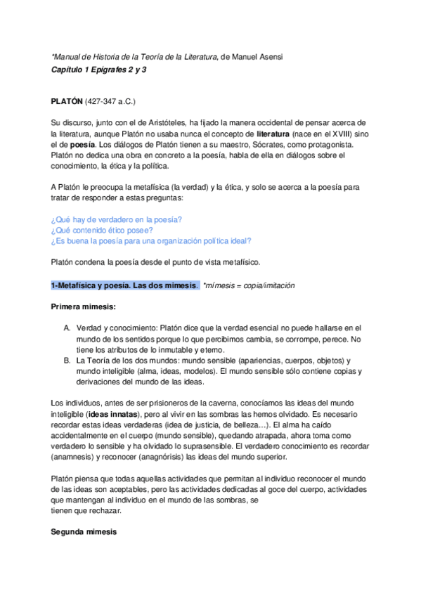He publicado nuevos apuntes de 1º Teoria de la Literatura: TEMA-2-PLATON.pdf