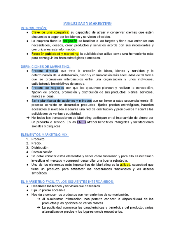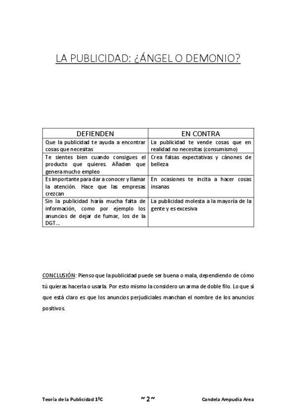 18 páginas bien estructuradas sobre la asignatura de teoría de la publicidad