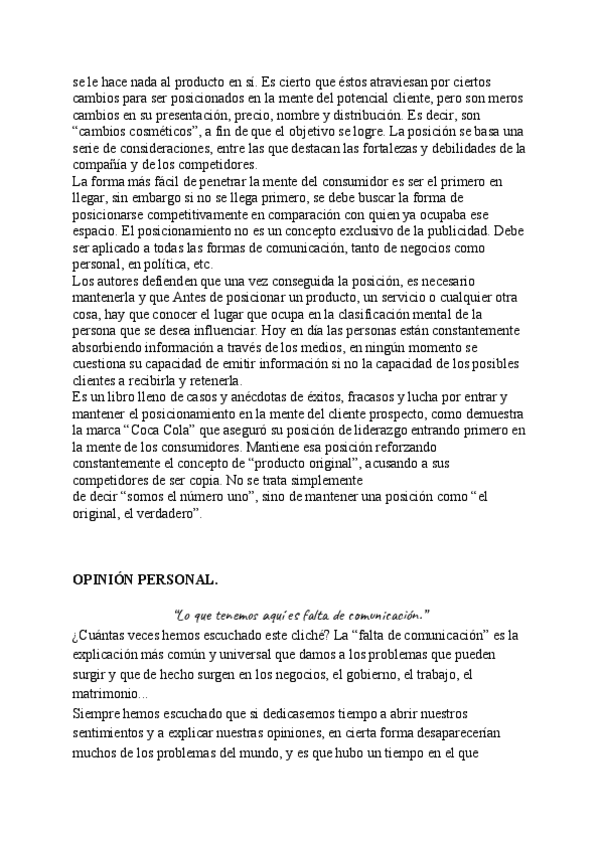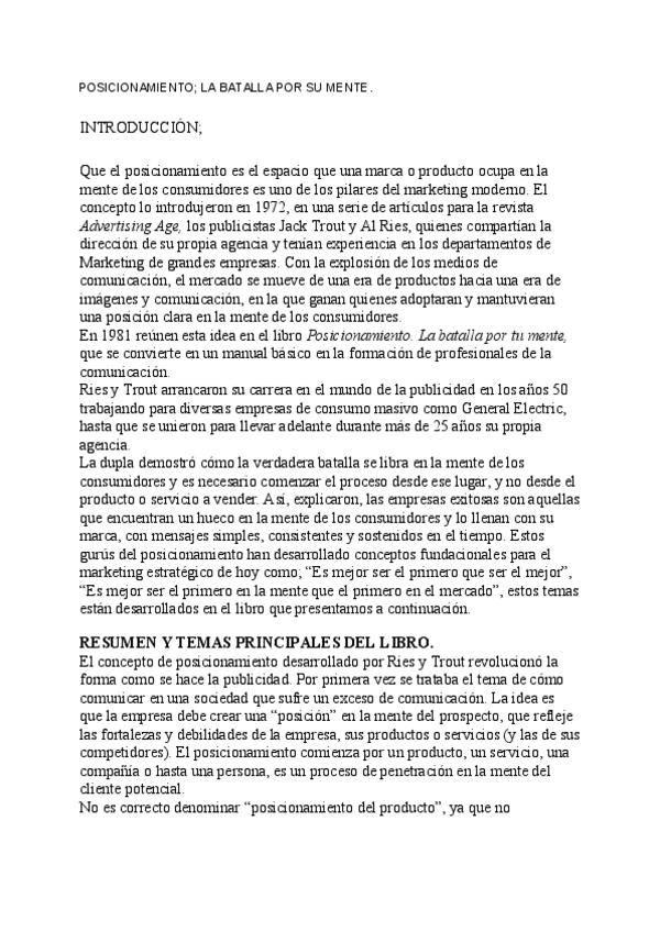 He publicado nuevos trabajos de 1º Teoría de la Publicidad: POSICIONAMIENTO- LA BATALLA POR SU MENTE.pdf