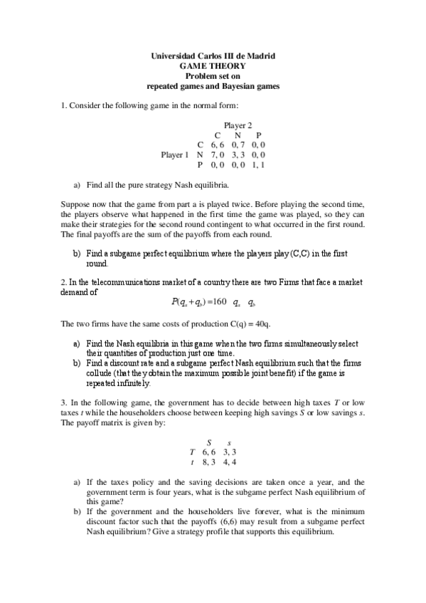 He publicado nuevos ejercicios de 2º Teoria de los Juegos: REPETIDOS-Y-BAYESIANOS.pdf